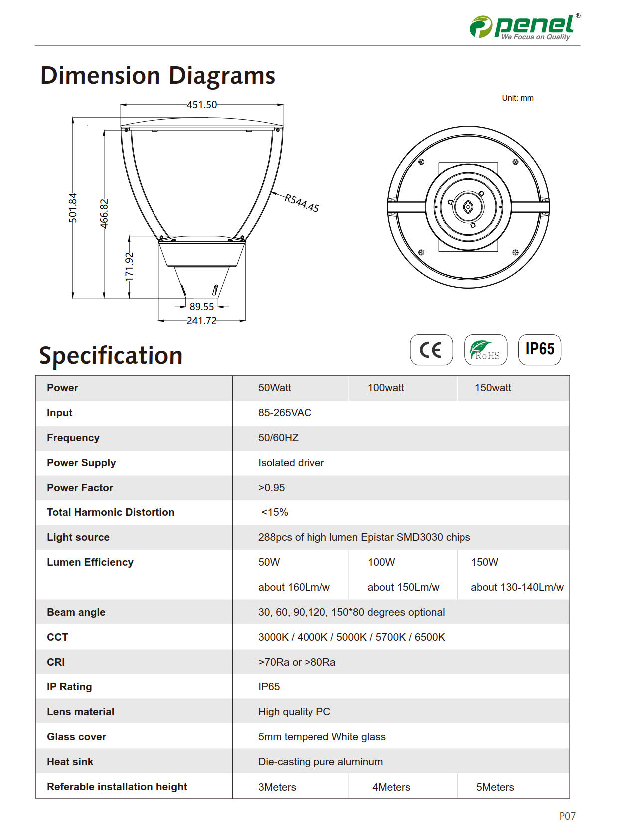 ●With super White tempered glass cover whose light-transmittance is a lot higher than normal green glass , ensure higher LM/W .