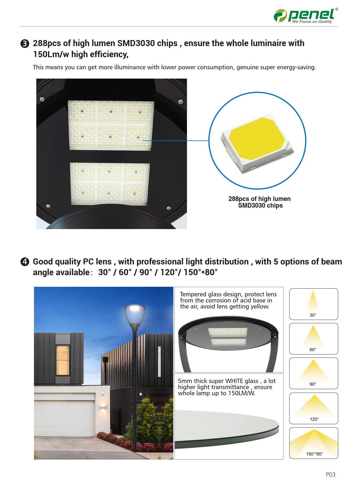 ●Beam Angle : 4 Options : 30/60°/90°/ 120°/ 150°*80°